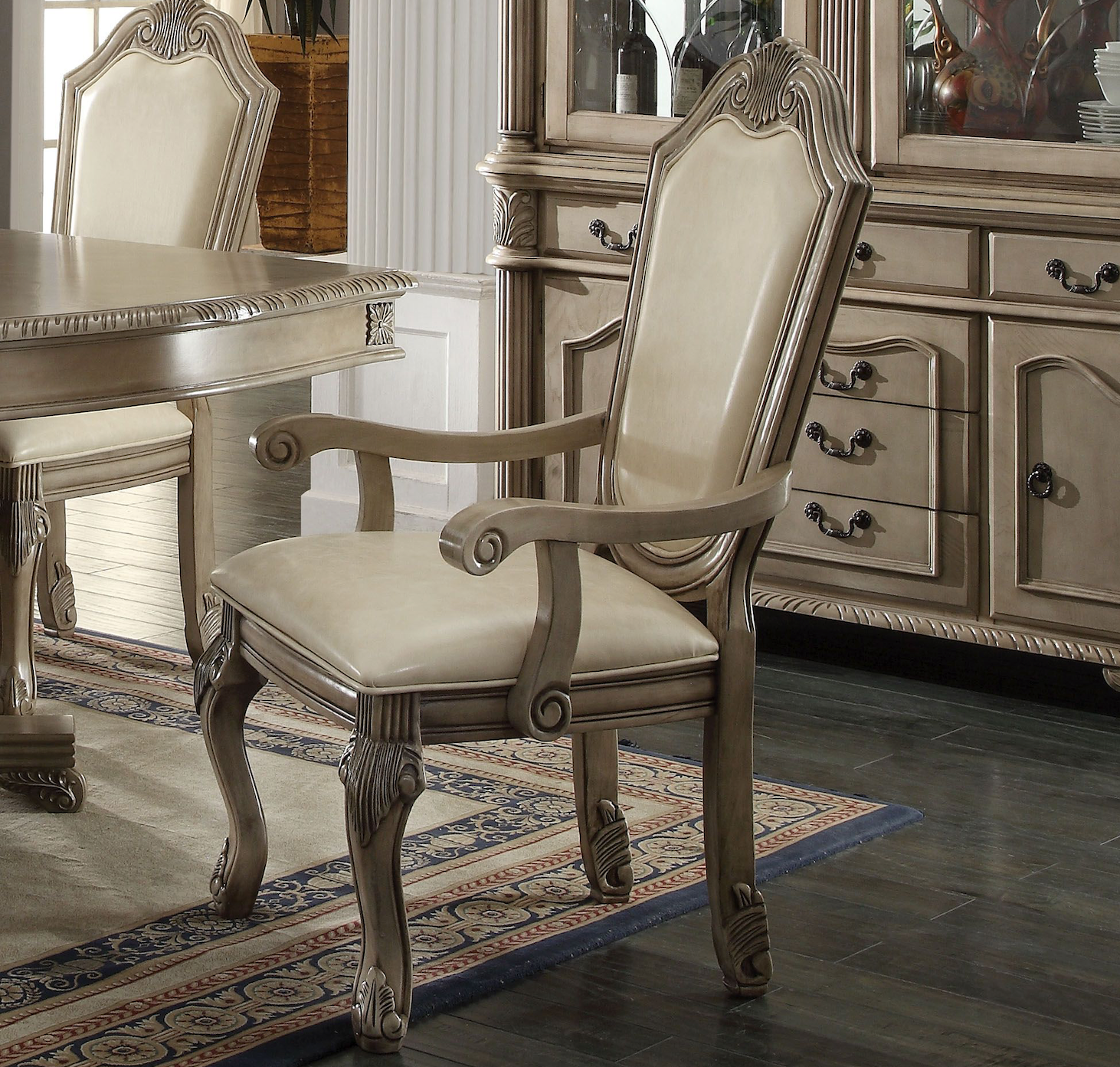ACME Chateau De Ville 8-Piece Dining Set Include 1 Dining Extension Table, 4 Side Chairs, 2 Arm Chairs and 1 Buffet & Hutch